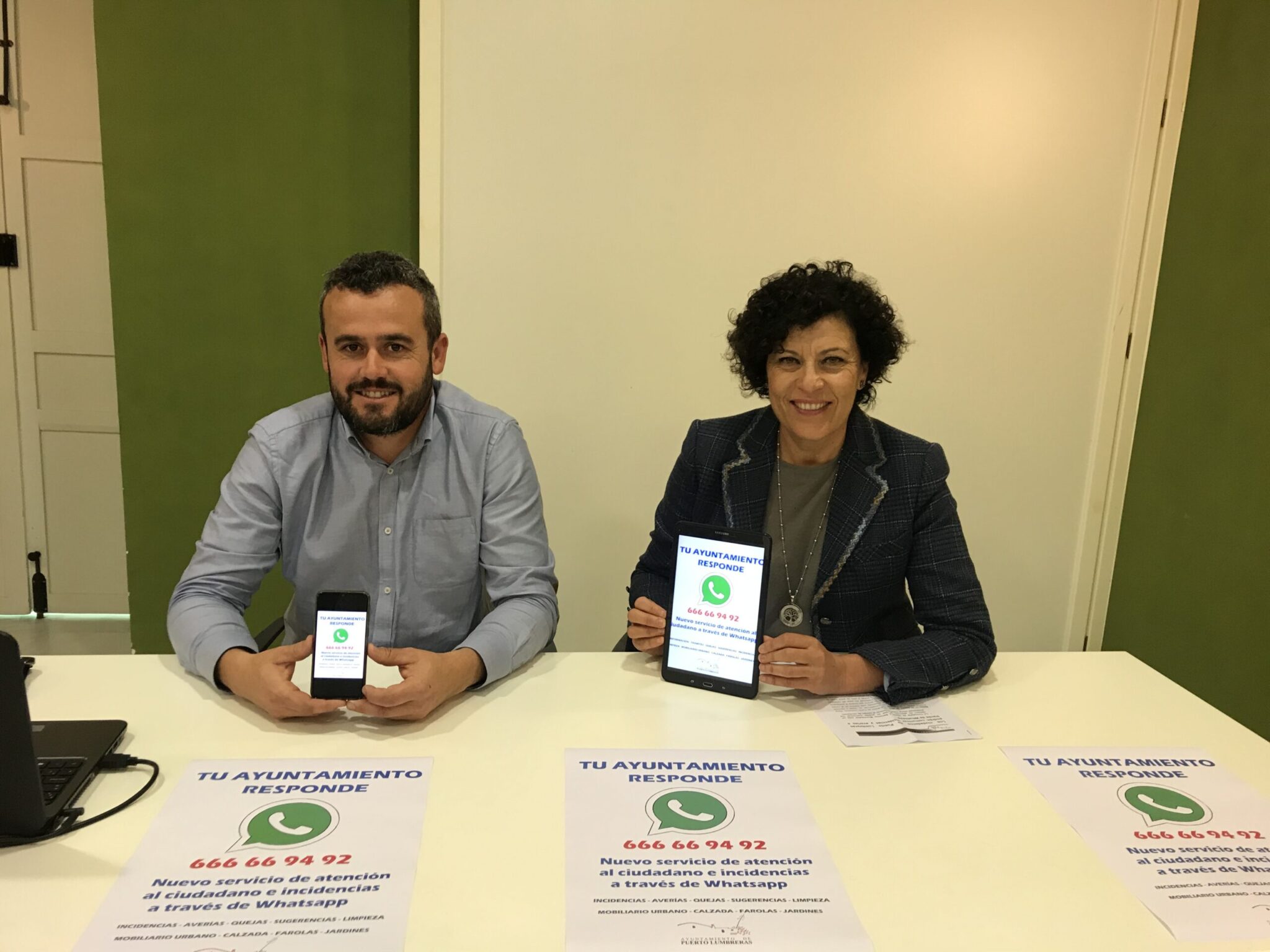 Martes 11 de febrero de 2019. La alcaldesa de Puerto Lumbreras, María Ángeles Túnez y el Concejal con competencias en Obras y Servicios Municipales, César Gázquez, han presentado esta mañana en el Centro Cultural Casa de los Duendes una nueva herramienta que fomenta la participación ciudadana y la rápida resolución de incidencias por parte del consistorio lumbrerense. Y es que los ciudadanos podrán a partir de ahora avisar de incidencias, averías, quejas o sugerencias sobre limpieza viaria, recogida de residuos, mobiliario urbano, desperfectos en la vía pública, parques, jardines o alumbrado, entre otras, con tan sólo enviar un mensaje. El teléfono 666 669 492 es una nueva vía de comunicación únicamente para WhatsApp que permite dar parte de incidencias o averías que se detecten y poder enviar su localización y fotografías de forma inmediata, cómodamente y de forma gratuita.