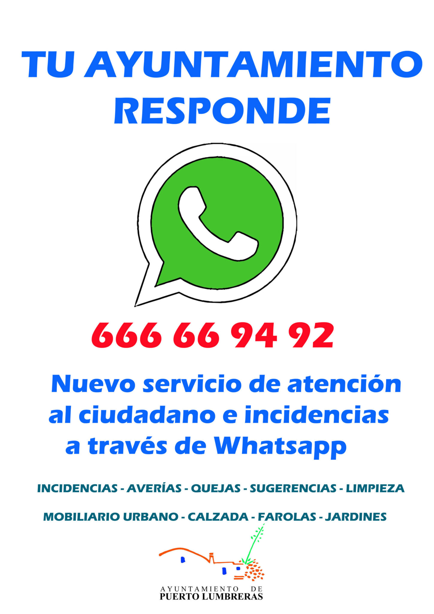 Los ciudadanos de Puerto Lumbreras podrán comunicar incidencias y averías a través de Whatsapp