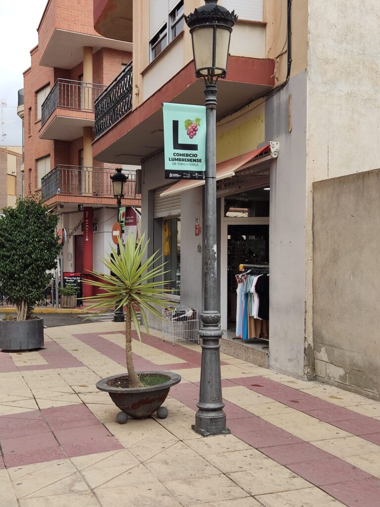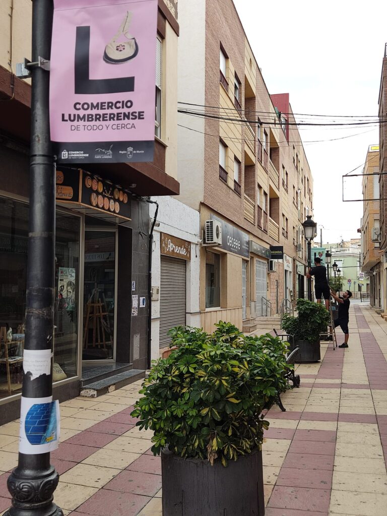Los carteles que a partir de hoy se pueden encontrar en la Avenida Juan Carlos I, calle Pedro García Rubio, Calle Mayor, Avenida Región Murciana, calle San Francisco y calle Lorca, “darán color a nuestras calles con el objetivo de invitar tanto a los lumbrerenses como a los visitantes a comprar en nuestro comercio local”, explica la concejala.