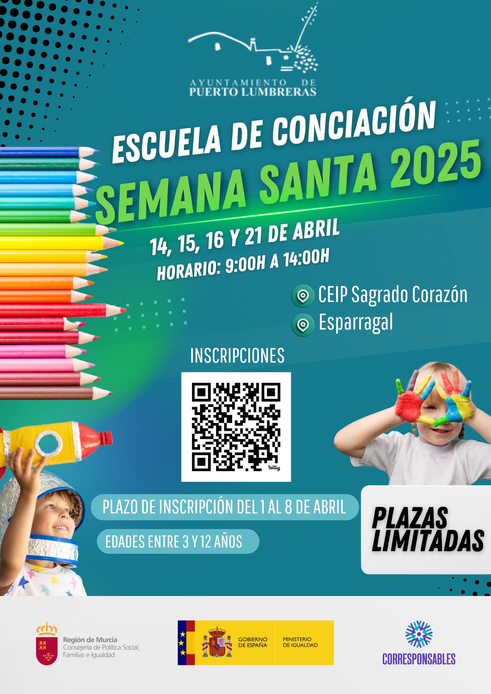 Pérez ha explicado que “desde el Ayuntamiento de Puerto Lumbreras, a través de la Concejalía de Educación, ponemos en marcha las Escuelas de Conciliación de Semana Santa, dentro del Programa Corresponsables, un servicio gratuito con el que facilitar a las familias de nuestro municipio conciliar la vida laboral con la familiar”.