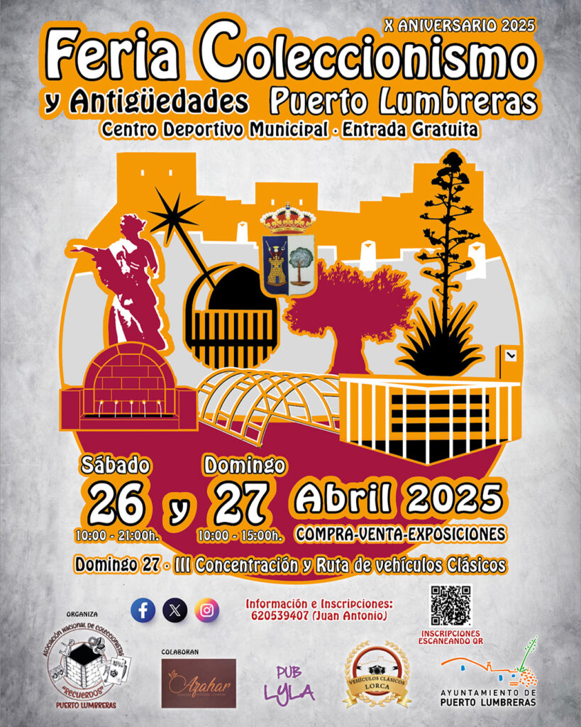 Túnez ha explicado que “este fin de semana, llega un ya tradicional evento anual en el calendario de nuestro municipio, la Feria del Coleccionismo y Antigüedades de Puerto Lumbreras en su décima edición y que nos volverá a convertir en referencia nacional del mundo del coleccionismo”.