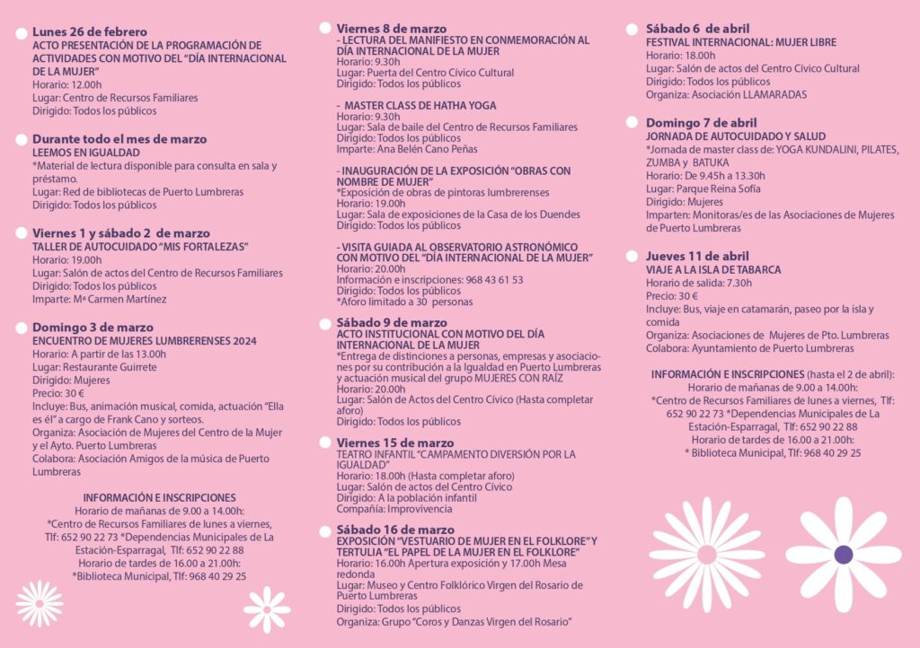 13 de marzo de 2024. La concejal de Cultura y del Centro de Recursos Familiares del Ayuntamiento de Puerto Lumbreras, Toñi Navarro, ha anunciado la actividad que se llevará a cabo este sábado, 16 de marzo, en Puerto Lumbreras.