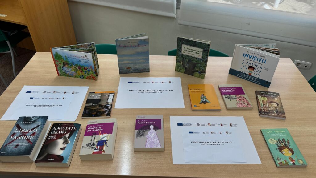“Esta dotación económica procede del Decreto n.º 144/2023, de 18 de mayo, por el que se regula la concesión directa de subvención a las entidades locales de la Región de Murcia, titulares de bibliotecas públicas, destinadas a la financiación de adquisición de fondos bibliográficos impresos, en el Marco del Plan Nacional de Recuperación, Transformación y Resiliencia- financiado por la Unión Europea – Next Generation EU”.